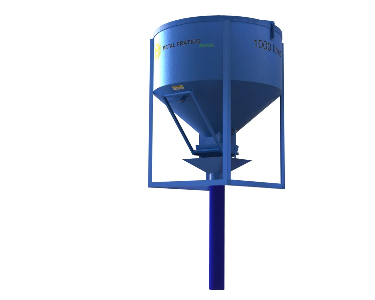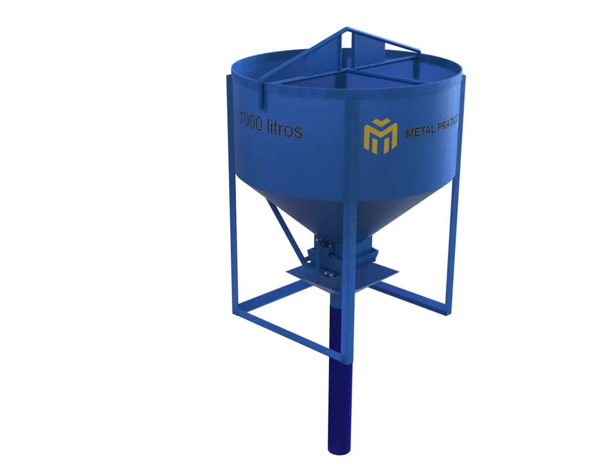 Balde de concreto da Metal Pratico Brasil, usado para descarga central e lateral, adequado para canteiros de obras como cimenteiras, paredes de fundição, tetos, colunas de estruturas monolíticas. O balde é de fácil manuseio, ideal para munck, grua, pontes rolantes e guindastes.
