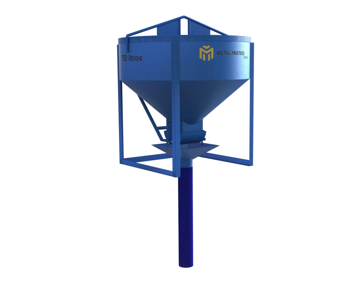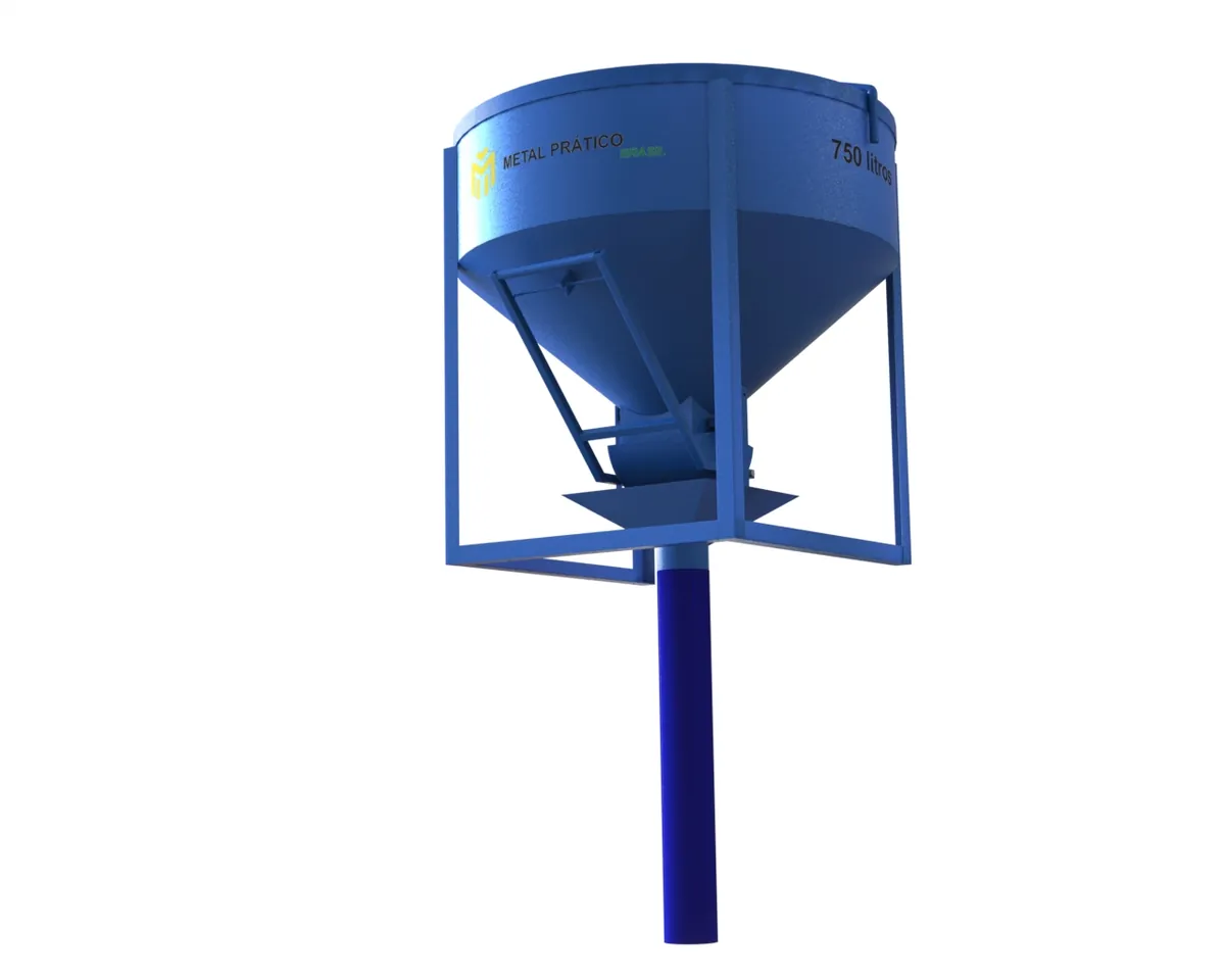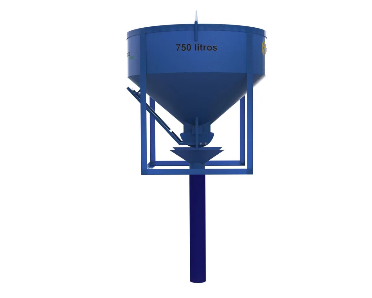 Balde de concreto da Metal Prático Brasil, com descarga central e lateral, adequado para canteiros de obras como cimenteiras, paredes de fundição, tetos, colunas de estruturas monolíticas. O balde é de fácil manuseio, ideal para munck, grua, pontes rolantes, guindastes.