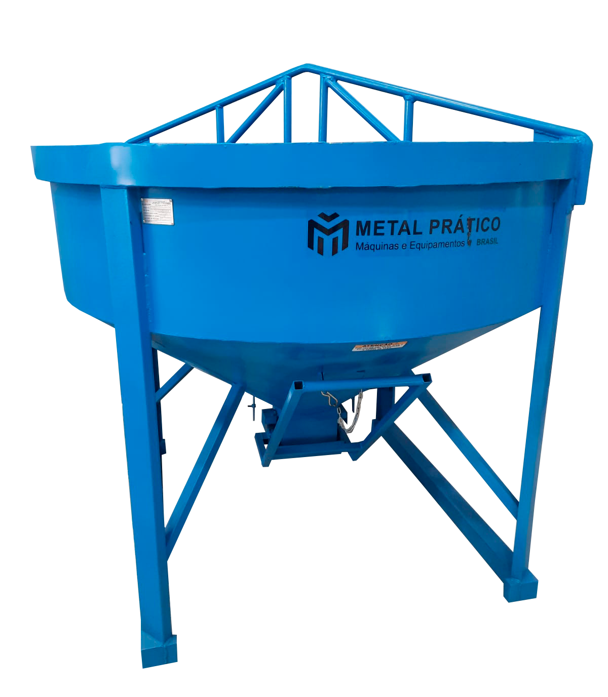Balde de concreto da Metal Prático Brasil, usado para descarga central e lateral, adequado para canteiros de obras como cimenteiras, paredes de fundição, tetos, colunas de estruturas monolíticas. O balde é de fácil manuseio, ideal para munck, grua, pontes rolantes, guindastes.