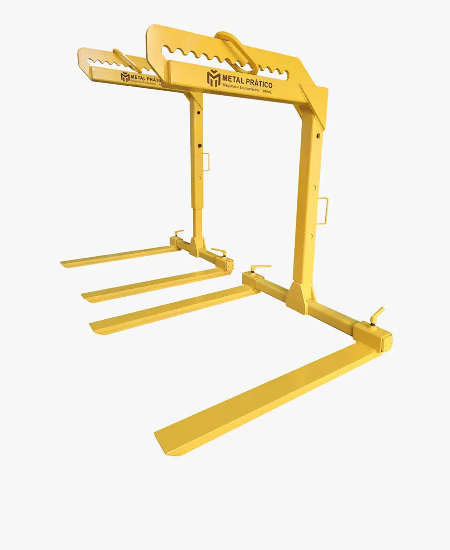O garfo oferece compensação  e ajuste do centro de gravidade em função do peso da carga